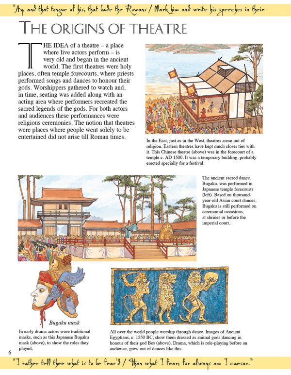 “A Shakespearean Theatre” is an invaluable guide to an important period in English history. With the use of superb cutaway illustrations, we take a look at the different people involved in the theatre and the way it operated, from the position of the audience to the elaborate stage machinery, providing a vivid and dramatic insight into life in Elizabethan England.