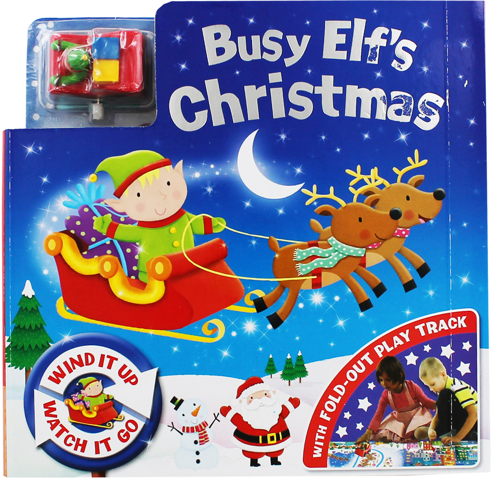 When one present gets left behind on Christmas Eve, Eddie Elf bravely decides to deliver it. Read the story, fold out the play track, then wind up the toy and watch Eddie Elf’s sleigh whizz around the North Pole and beyond!